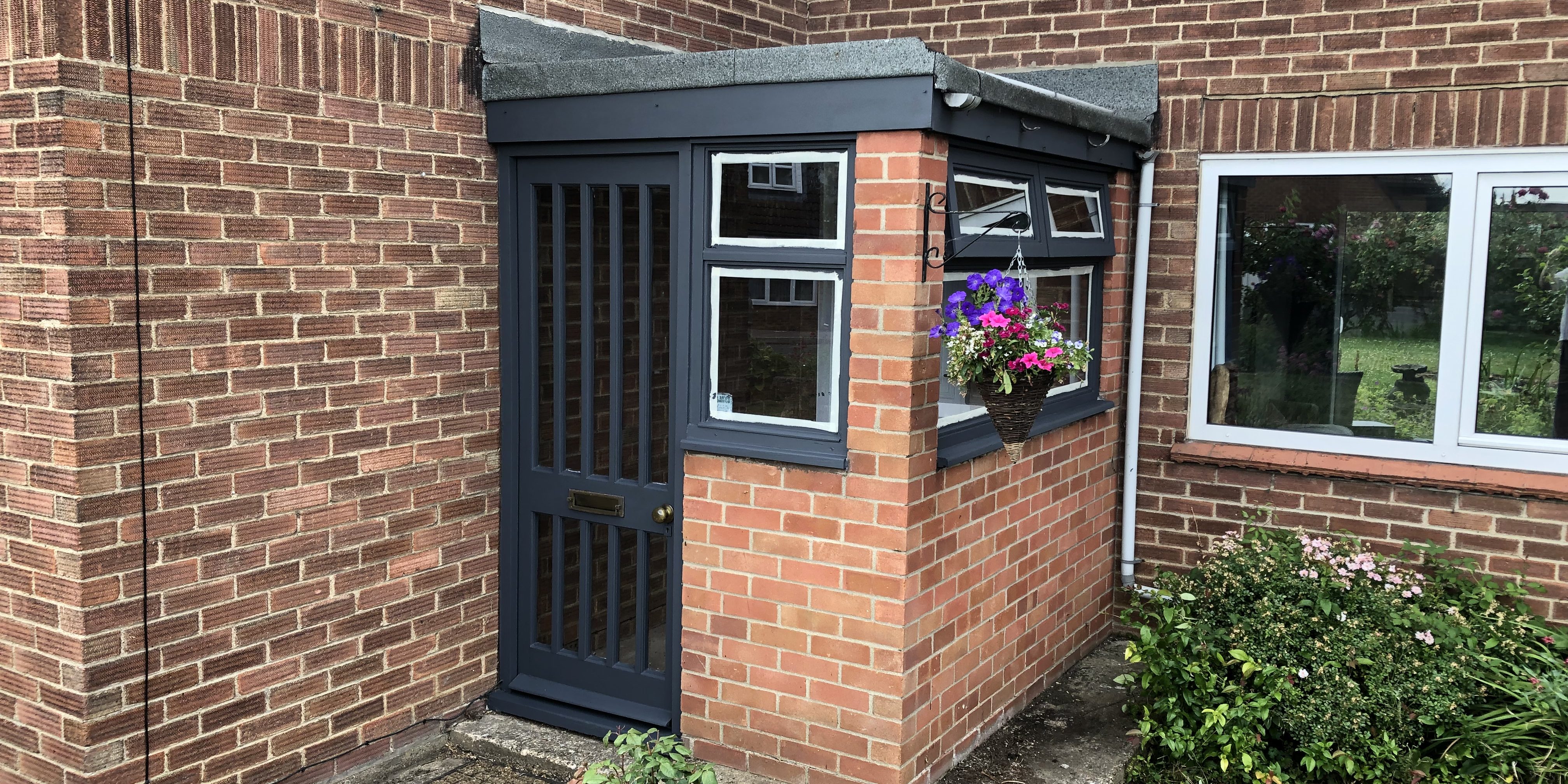 Spent the last couple of days treating, filling, sanding and painting this porches Timber framed windows and doors. Looks like new!! just got to remove masking tape and put back up gutter….