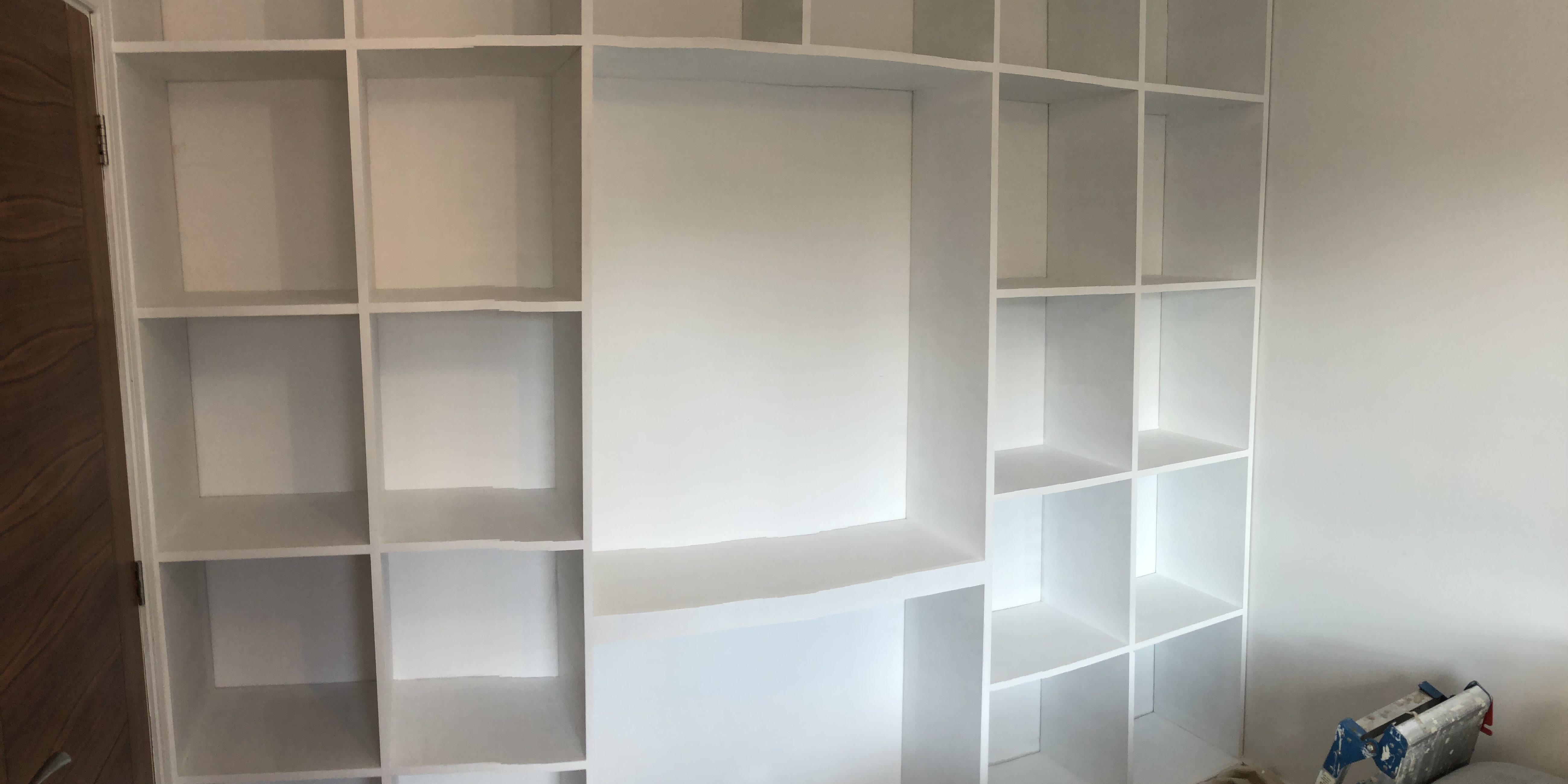 Our client wanted not one, but two bespoke bookcases one to mirror one we’d created years ago in the lounge and the other for a child’s bedroom. It’s the bedroom we tackled first and here’s some of the photos taken during the installation.