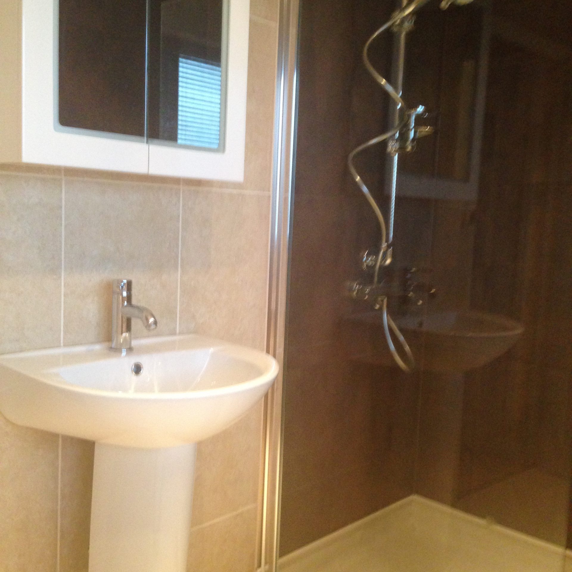 By knocking the separate WC and Bathroom into one larger space we managed to en-corporate an additional Walk In Shower along with the Bath, WC and Basin.